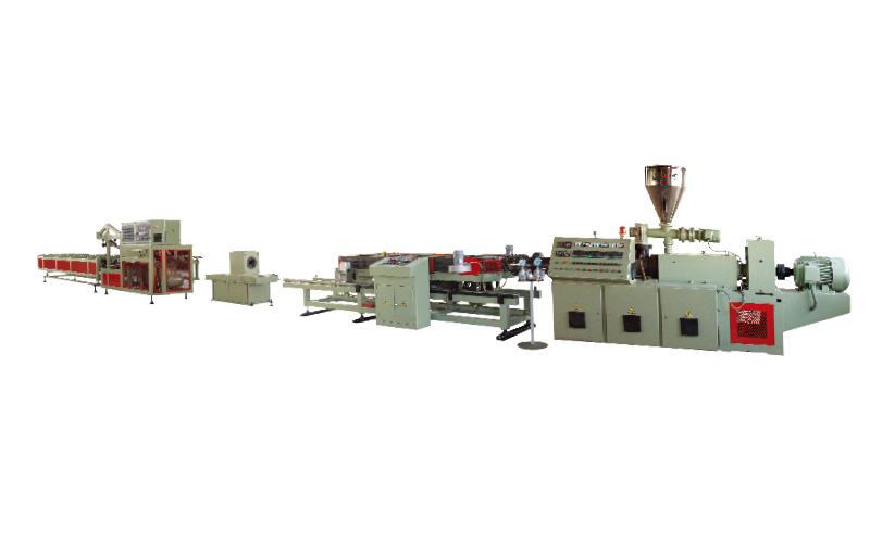 本機組由振動篩、高速混合機及冷卻機、塑料粉末加料機、錐形雙螺桿塑料擠出機,(單螺桿擠出機)機頭、雙壁波紋管成形機、塑料管擴口機、堆放架、冷水機、空氣壓縮機組成,主要用于生產PVC、PE等塑料雙壁波紋管及塑料單壁波紋管。